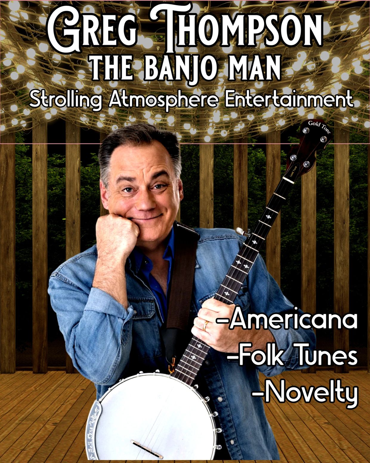 Greg Thompson, known as “The Banjo Man,” is a versatile strolling entertainer who brings music, humor, and colorful characters to life at events of all kinds. Armed with his banjo and a quick wit, Greg roams through the crowd performing familiar tunes, lighthearted comedy, and interactive musical moments that delight guests of all ages.